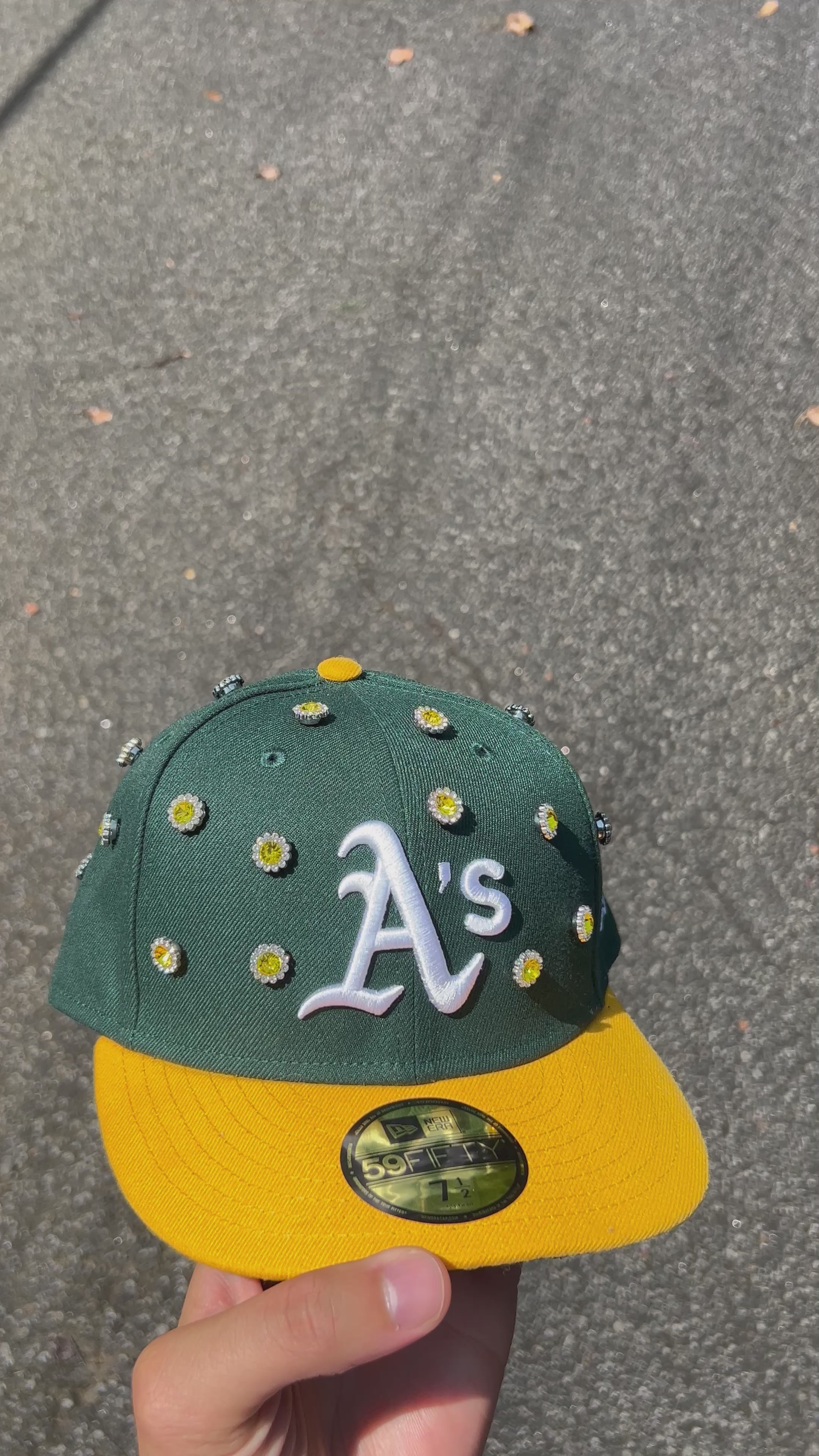 A’s Yellow Rhinestone Fitted Hat